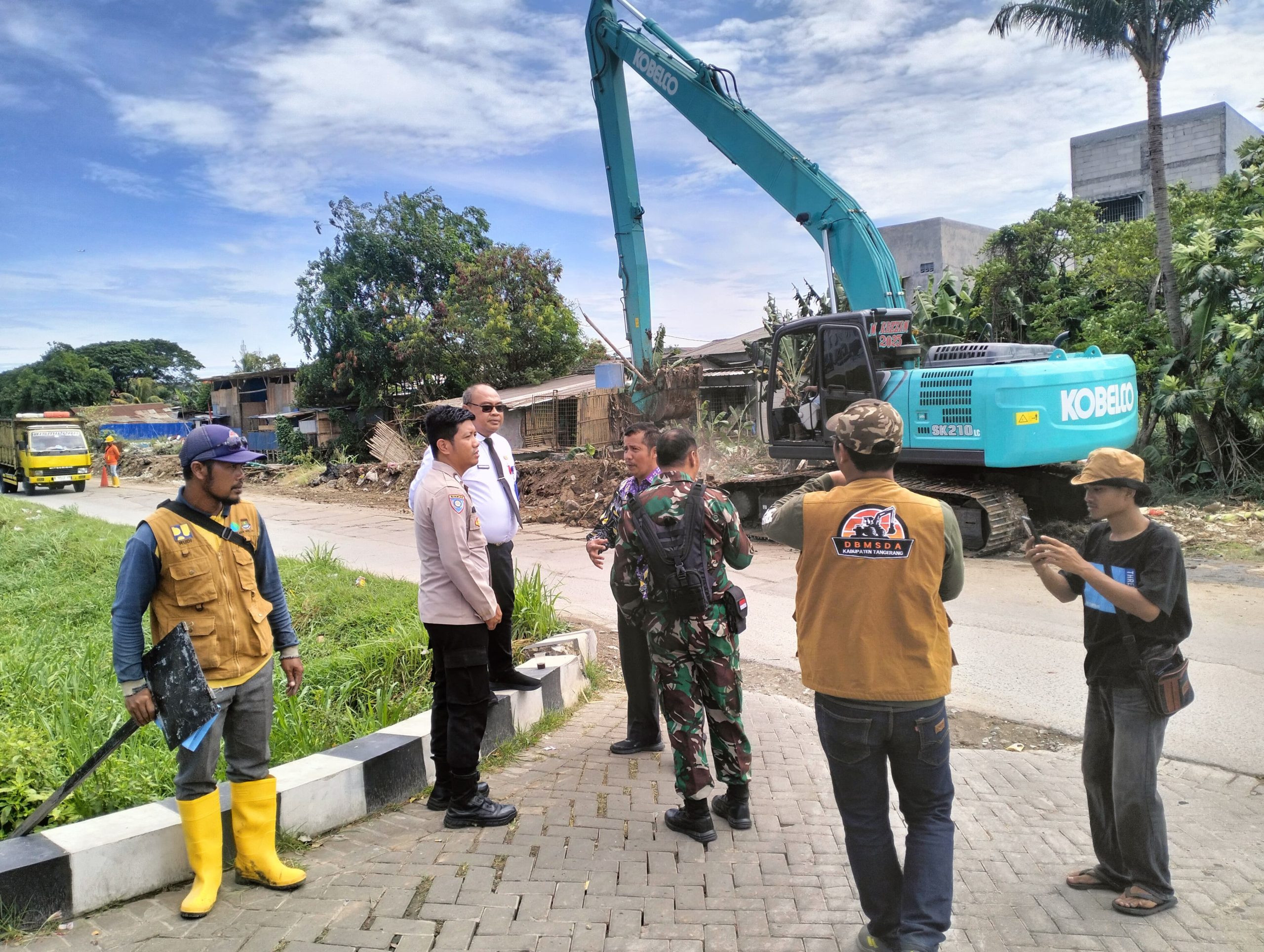 Camat Pasa kemis H. Nurhanudin bersama unsur Kelurahan dan Dinas Bina Marga memantau ada beberapa bangunan liar yang berdiri di atas badan sungai yang mengakibatkan aliran sungai tidak lancar karna banyaknya tumpukan sampah.