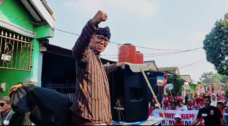 Tampak dalam Karnaval HUT RI Ke 80 Ketua Rw 004 H.Kisto yang begitu semangat sampai menari – nari di atas mobil sambil melaju pelan