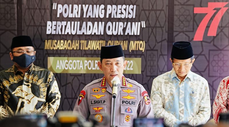 Jakarta, WIT – Kapolri Jenderal Listyo Sigit Prabowo menghadiri penganugerahan Musabaqah Tilawatil Qur’an (MTQ) anggota Polri di Auditorium STIK-PTIK, Kamis (18/82022). Kapolri menyebut sekitar 796 personel Polri dari 34 Polda mengikuti acara yang diselenggarakan dalam rangka HUT Kemerdekaan RI ke-77.