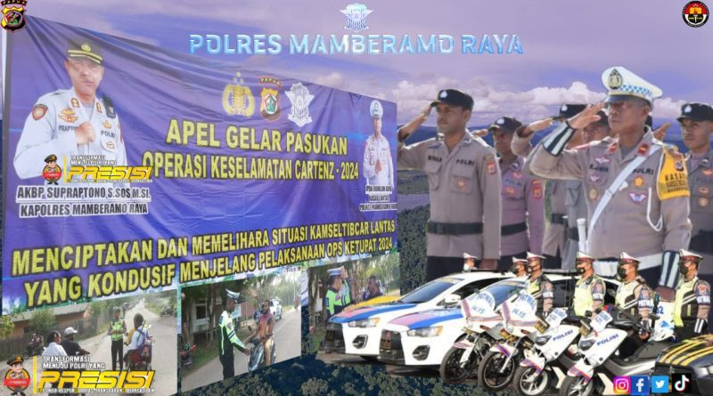 “Apel gelar pasukan keselamatan 2024 dilaksanakan serentak di 38 Provinsi di seluruh Indonesia. Hal ini dilakukan guna cipta kondisi dalam menyongsong pelaksanaan perayaan bulan suci Ramadhan, sehingga kegiatan operasi ini diharapkan dapat dilaksanakan dengan optimal dan sesuai dengan tujuan dan sasaran yang ditetapkan dalam rencana operasi guna menunjang situasi yang kondusif aman dan nyaman sehingga pada pelaksanaan operasi keselamatan Cartenz tahun 2024 yang mengedepankan kegiatan preemtif dan preventif guna meningkatkan partisipatif masyarakat dalam menciptakan Sitkamseltibcar Lantas yang aman, nyaman dan tenang menjelang perayaan bulan suci ramadhan disela berjalannya pentahapan Pemilu 2024 yang sementara ini sedang berjalan di Kabupaten Mamberamo Raya.