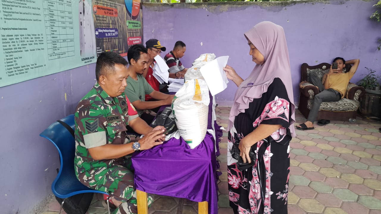 Dalam pendistribusian tersebut Babinsa Koramil 13/Csk melakukan pendampingan dan membantu dalam pendistribusian kepada warga masyarakat yang sudah mendapatkan undangan.