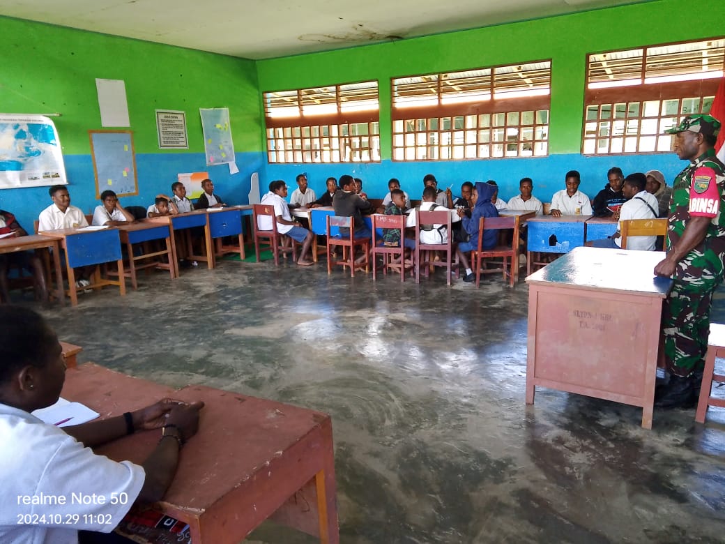 Wamena – Dalam upaya meningkatkan pemahaman siswa terhadap pelajaran matematika, Babinsa Koramil 1702-03/Kurulu berikan pembelajaran matematika dasar kepada murid SMP N 1 Kurulu, bertempat di Jln. Jiwika Distrik Kurulu, Kabupaten Jayawijaya, Provinsi Papua Pegunungan, Rabu (30/10/2024).