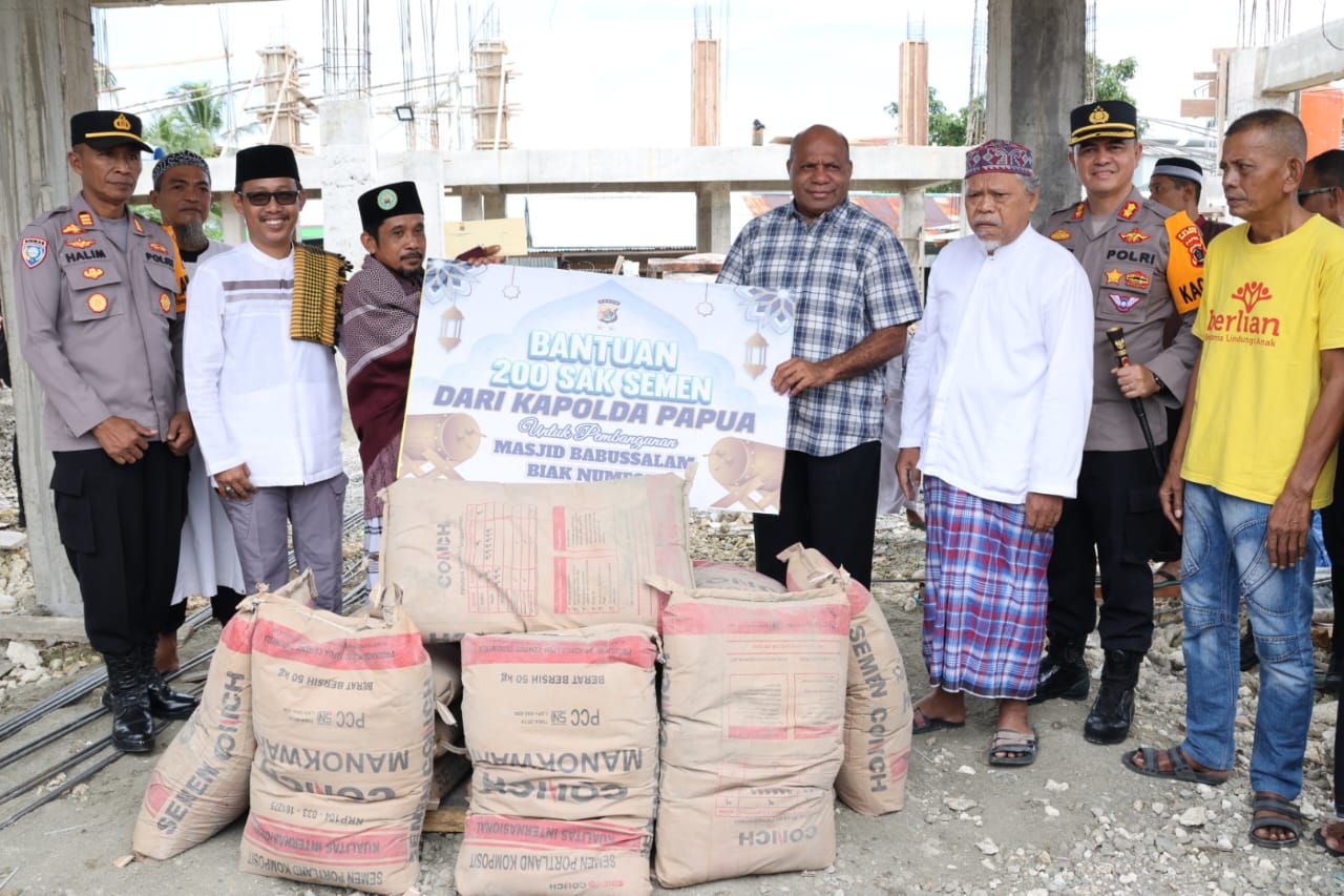 Papua – Kapolda Papua, Irjen Pol. Mathius D. Fakhiri, S.I.K, telah menyerahkan bantuan berupa 200 sak semen untuk pembangunan Masjid Babussalam, Kecamatan Biak Kota, Kabupaten Biak Numfor.(8/4).