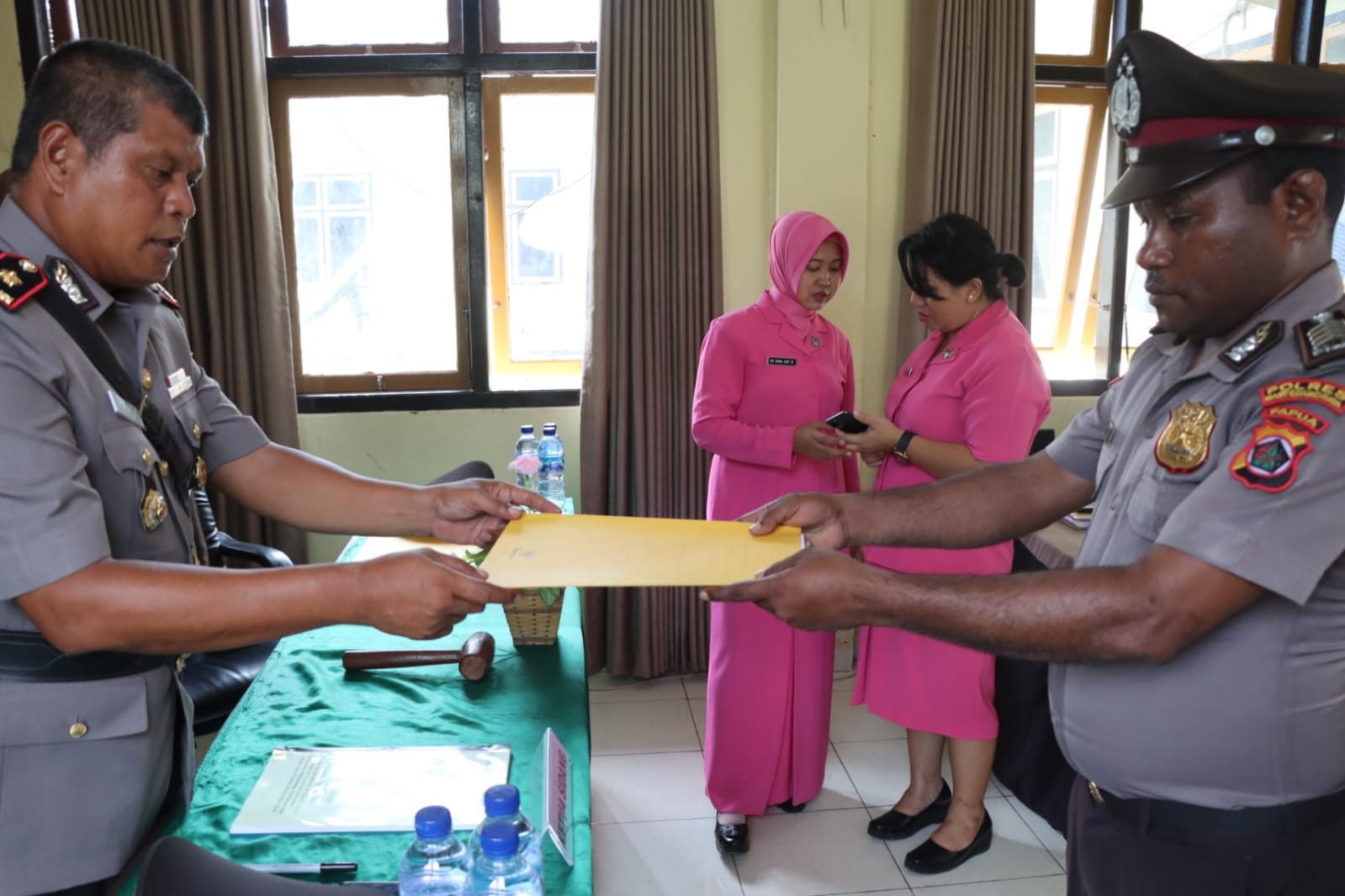 Turut hadir Wakapolres Mamberamo Raya Kompol Erol Sudrajat S.Sos.,M.si, Kabag SDM Iptu Elton Jack Rumbiak, Kasi Propam Aiptu Lutfi Salim Ketua Bhayangkari yang di wakili oleh Ketua Organisasi Ny.Nana Arip Marianto serta Anggota yang Mengikuti Sidang yaitu Bripka Jhon krey dan Briptu muchatar Safitra bersama Pasangan.