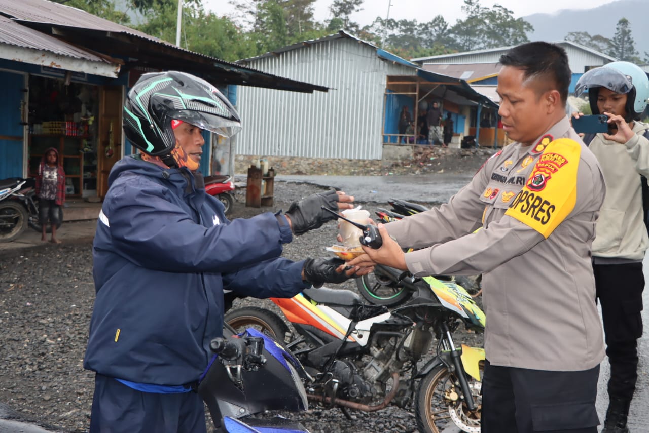 Berkah Ramadhan, Kapolres Puncak Jaya Bersama Personel Bagikan Takjil Berbuka Puasa Kepada Masyarakat Kota Mulia