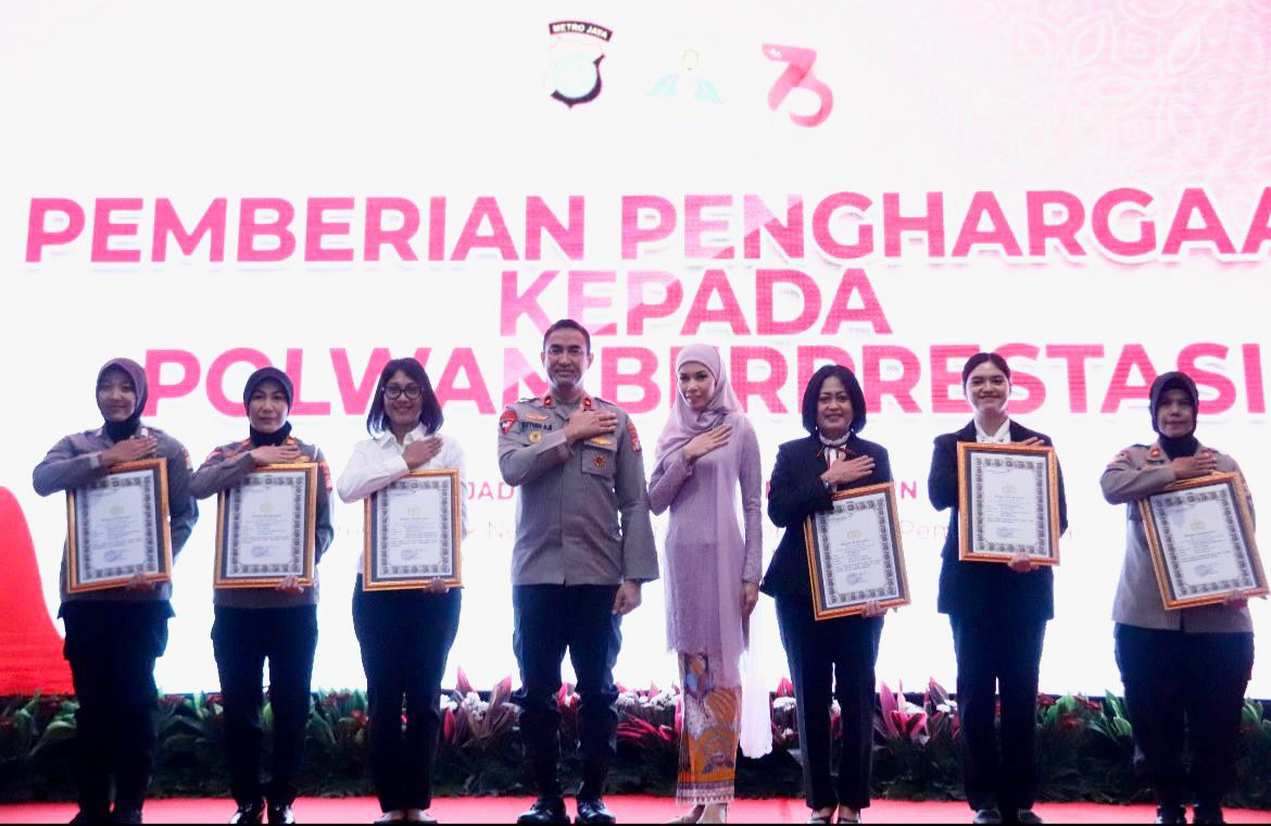 Penghargaan diserahkan langsung oleh Waka Polda Metro Jaya Brigjen Pol Suyudi Ario Seto pada kegiatan syukuran Hari Jadi Polwan ke-75 tahun 2023 di BPMJ, Jumat (1/9).