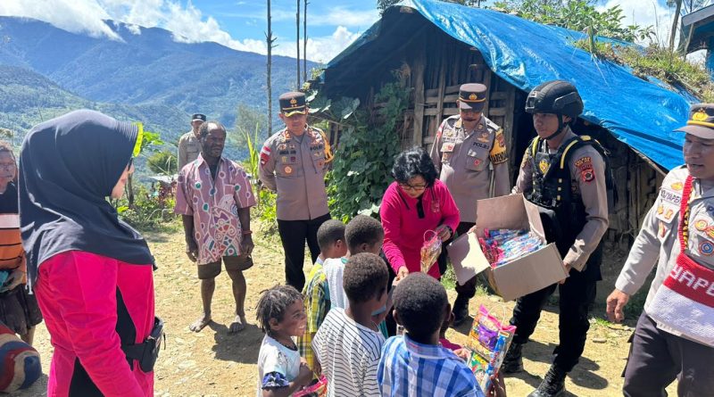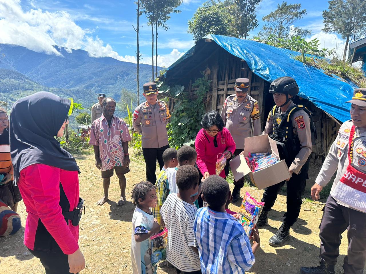 Bhayangkari Cabang Intan Jaya Bagikan Bantuan Kepada Masyarakat di Pedalaman Papua
