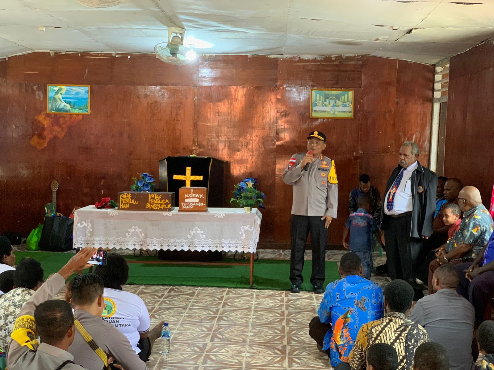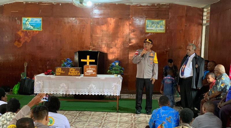 Sementara itu, Pendeta Melkianus Kum mewakili Jemaat yang hadir mengucapkan terimakasih banyak kepada Kapolres Mimika yang bersedia meluangkan waktu untuk bertemu langsung dengan Jemaat dan melihat serta mendengarkan berbagai macam keluhan dan permasalahan yang ada di masyarakat.