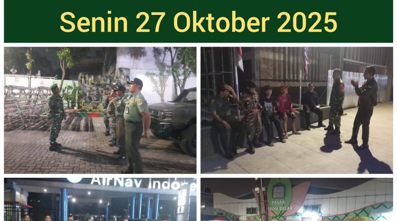 Tangerang|wartaindonesiaterkini.com–Personel Koramil 02/Batuceper Kodim 0506/Tangerang bersama Komponen Pendukung (Komduk) dan Banser menggelar patroli malam di wilayah Kota Tangerang, Senin (27/10/2025). Kegiatan yang dimulai pukul 22.00 WIB ini bertujuan menjaga keamanan dan ketertiban masyarakat, sekaligus memperkuat sinergi antara aparat TNI dan elemen masyarakat dalam mewujudkan lingkungan yang aman dan kondusif.