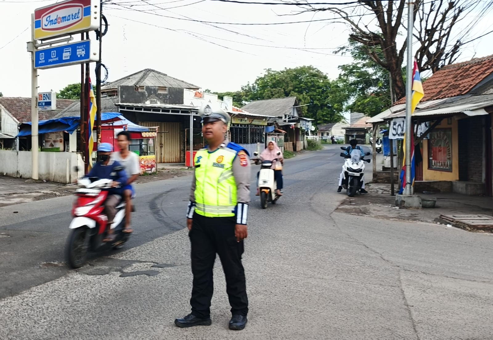Dua personel Unit Patroli Polsek Panongan, yakni Aiptu Dhermawan dan Faisal Afdal, diterjunkan langsung ke lapangan untuk melaksanakan pengaturan arus kendaraan sekaligus memberikan pelayanan kepada masyarakat pengguna jalan.