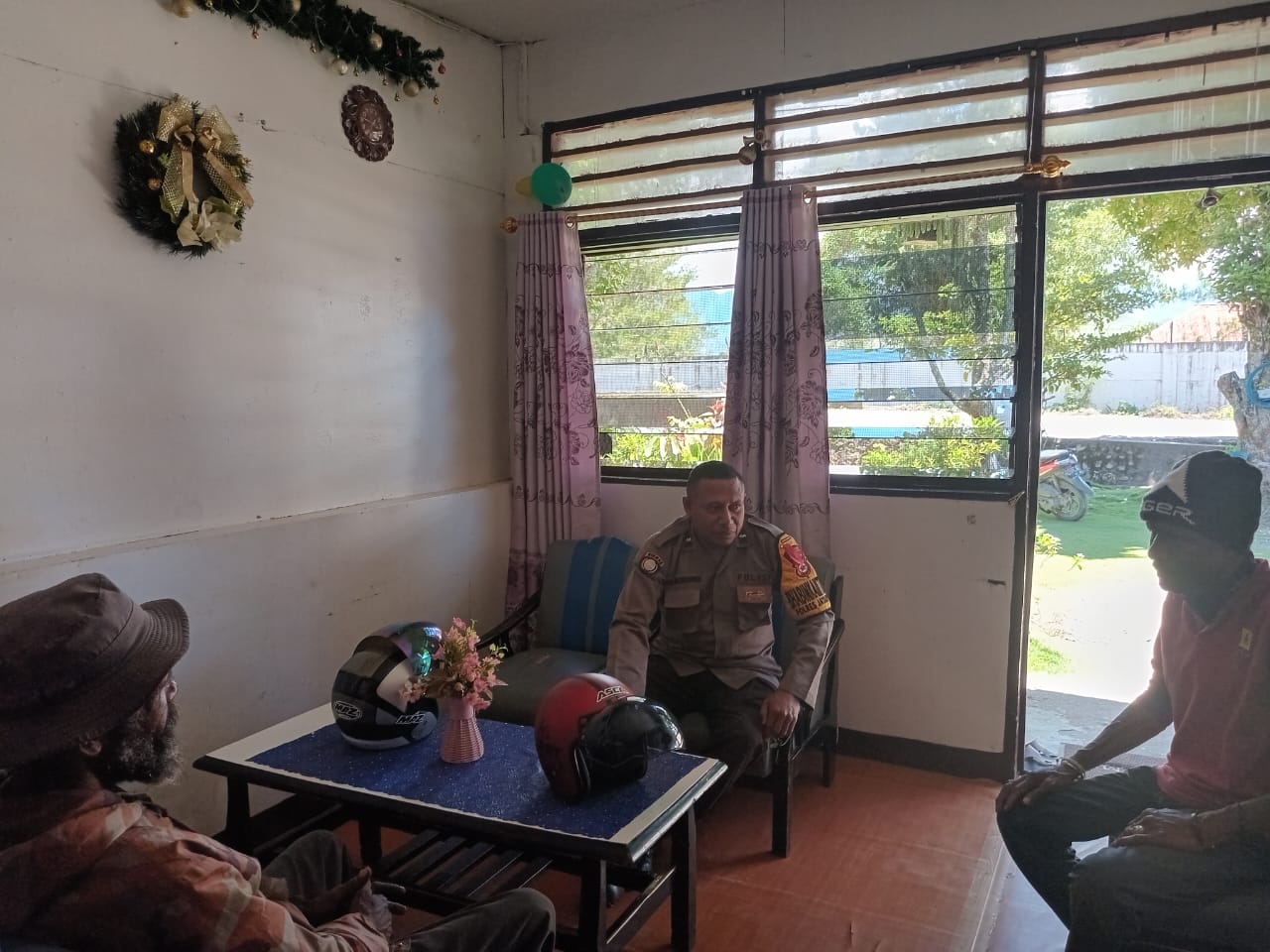 Dalam kegiatan sambang tersebut anggota Bhabin Aipda Rio Mandouwen menemui bapak Linder Mourin dan Hans Kogoya guna menjalin tali silaturahmi sekaligus memberikan pesan-pesan Kamtibmas menjelang Pemilu 2024.