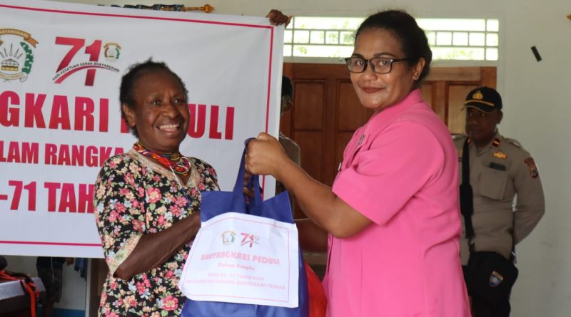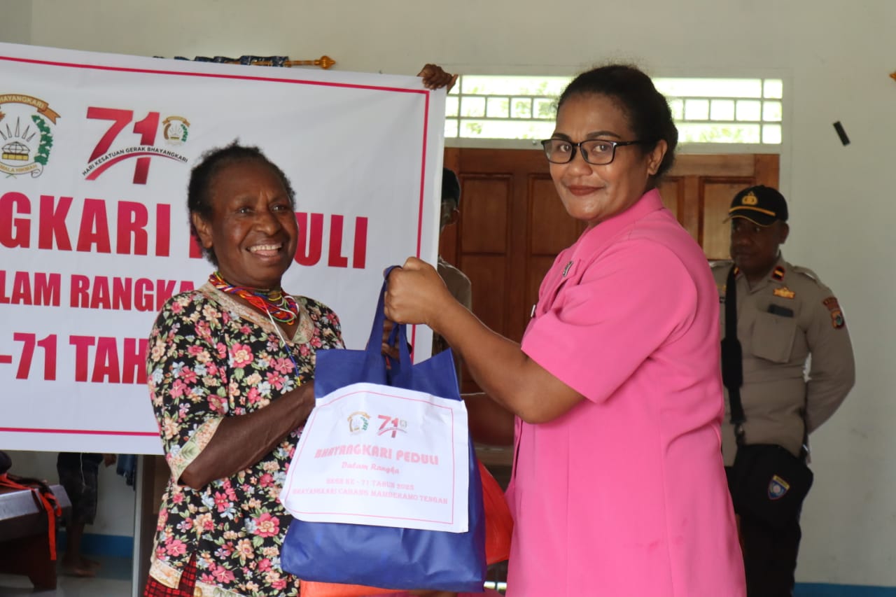 Dalam Rangka HKGB ke-71 tahun 2023 Bhayangkari Cabang Mamberamo Tengah Melaksanakan Bansos kepada mama-mama janda Desa GIMBIS