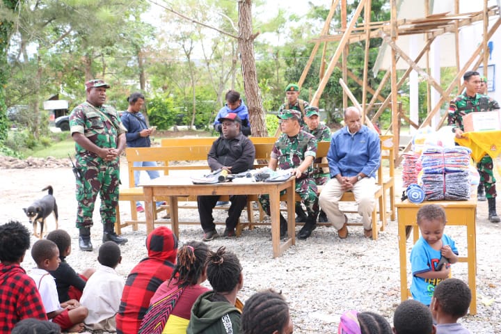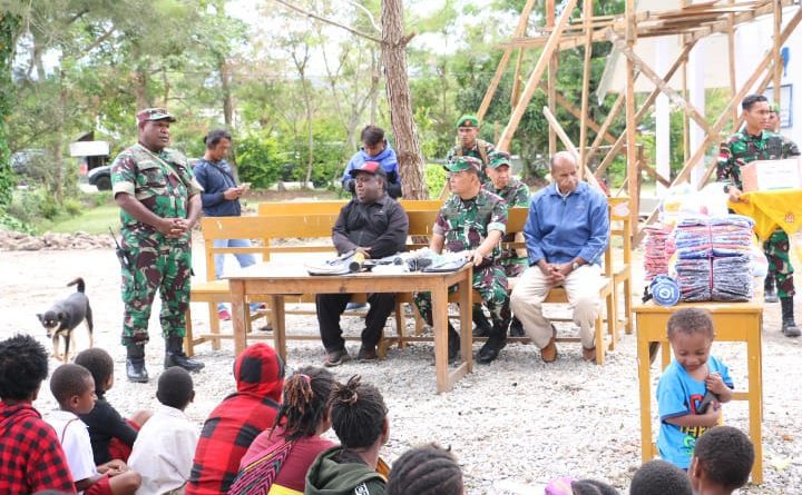 Papua – Dandim 1702/Jayawijaya Letkol Cpn Athenius Murip, S.H., M.H., dampingi Tim Wasev tinjau pembangunan gereja dalam rangka Program Prioritas Bakti Papua Tahun 2023, bertempat di Distrik Assolokobal, Kabupaten Jayawijaya, Provinsi Papua Pegunungan, Rabu (13/09/2023).