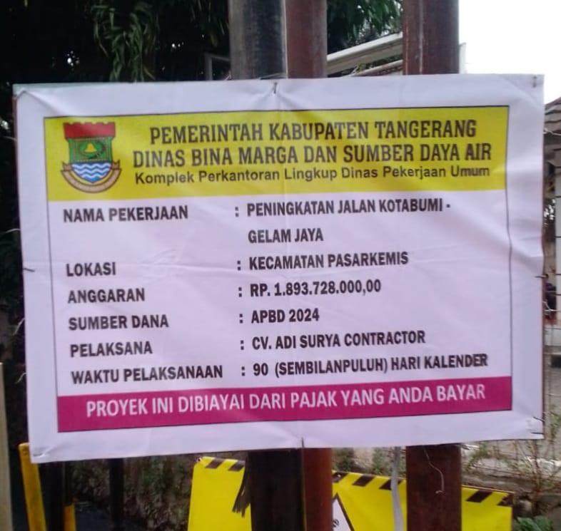 Lanjutnya, dengan adanya pembangunan jalan di beberapa titik di wilayah Kecamatan Pasarkemis tentu dapat mengganggu pejalan kaki maupun yang menggunakan kendaraan, oleh karena itu Saya atas nama pemerintah kabupaten Tangerang mohon maaf khususnya kepada warga Kecamatan Pasarkemis.