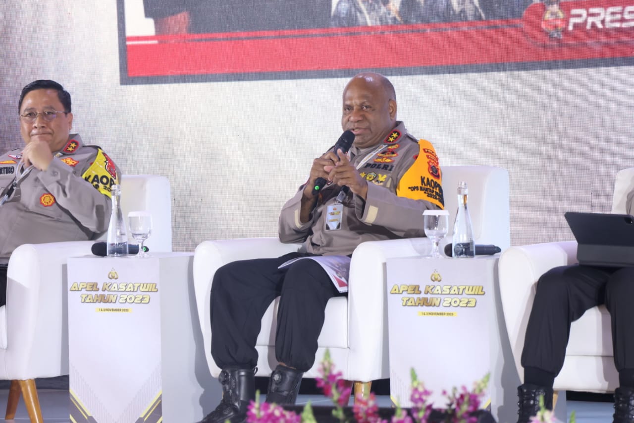 Papua – Kepala Kepolisian Daerah Papua, Irjen Pol. Mathius D. Fakhiri, S.I.K menjadi pemateri di kegiatan Apel Kasatwil Tahun 2023 yang dipimpin oleh Wakapolri, Komjen. Pol. Drs. Agus Andrianto, S.H., M.H., bertempat di Grand Ballroom The Ritz Carlton Jakarta Jalan Dr. Ide Anak Agung Gde Agung Nomor 1 Mega Kuningan Kecamatan Setiabudi Kota, Jumat (3/11/2023).