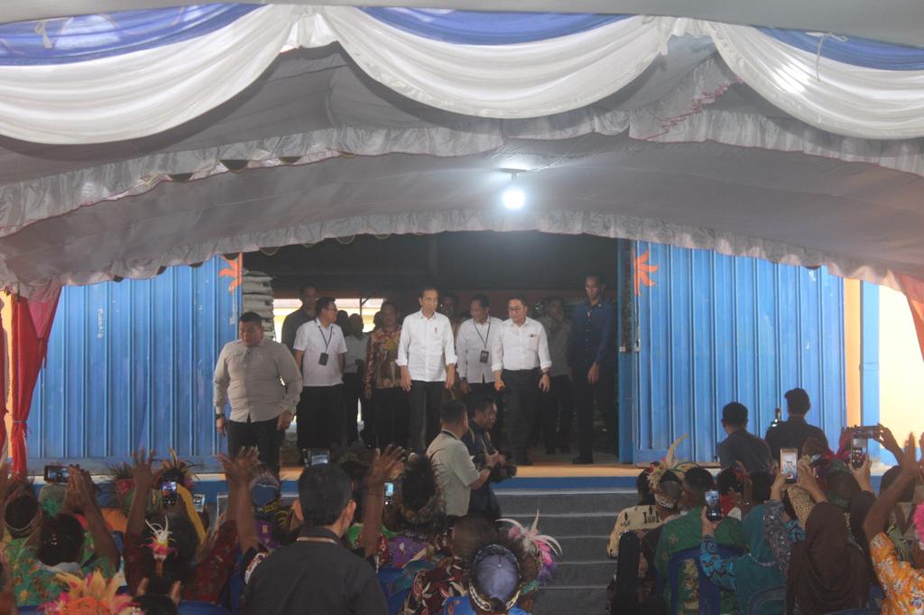 Papua – Presiden Republik Indonesia, Ir. H. Joko Widodo, tiba di Kabupaten Biak Numfor, Papua, dan langsung memulai rangkaian kegiatan didampingi Kapolda Papua, Irjen Pol. Mathius D. Fakhiri, S.I.K pada Rabu (22/11). Dalam kunjungannya, Presiden Jokowi mengawali hari pertamanya dengan peninjauan Gudang Bulog Mandala.