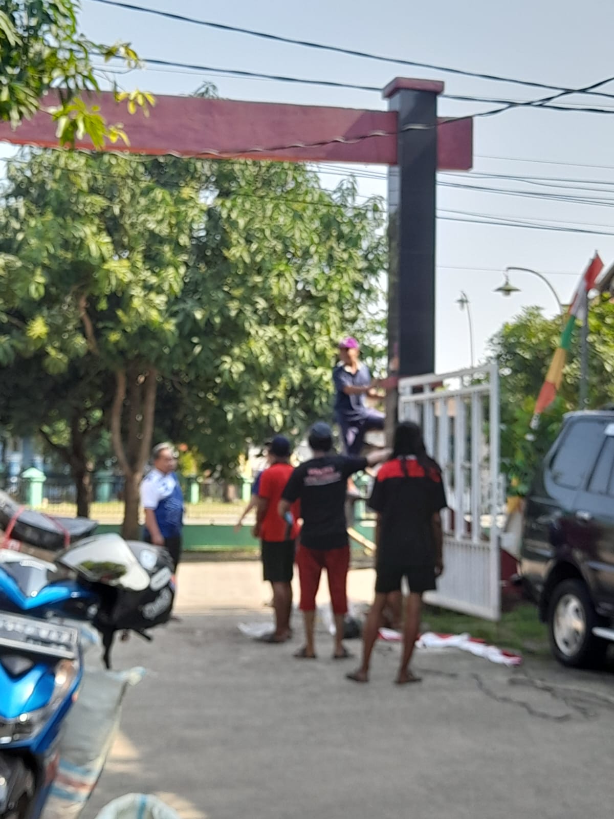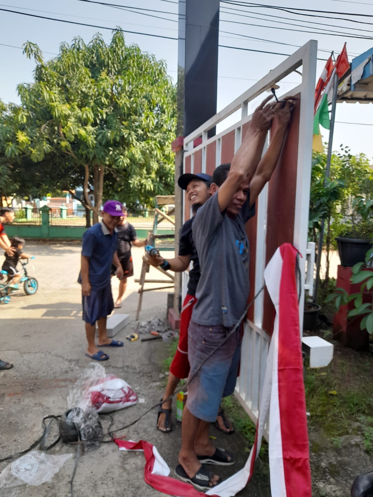 Hal yang sama juga dikatakan, Lasidy, ketua RT 01/RW10, bahwa hari ini pihaknya bersama warga melakukan serangkaian pemasangan bendera umbul umbul dan pengecetan/perbaikan Gapura, yang dinilai Gapura tersebut sudah cukup lama dan mulai kusam warnanya.