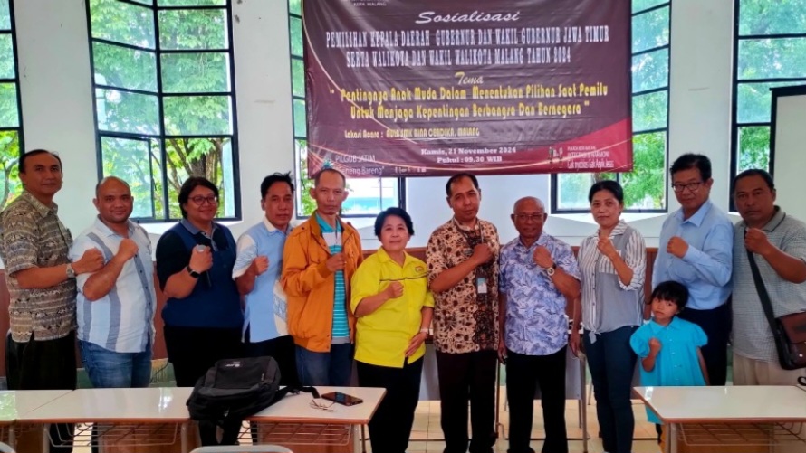 Kota Malang|wartaindonesiaterkini.com – SMKS Bina Cendika, sebuah gedung cagar budaya di Jl. Semeru No. 42, Malang, menjadi lokasi penyelenggaraan acara sosialisasi PILKADA Jawa Timur bagi pemilih pemula. Acara ini diinisiasi oleh Persatuan Wartawan Nasrani (PEWARNA) Malang Raya bekerja sama dengan Komisi Pemilihan Umum (KPU) Kota Malang, Kamis (21/11/2024).