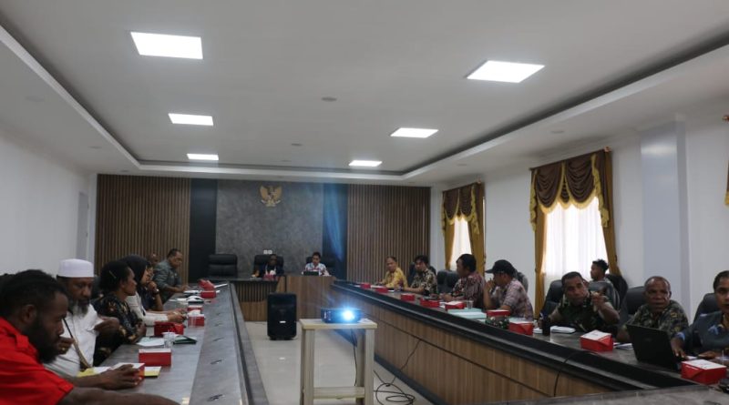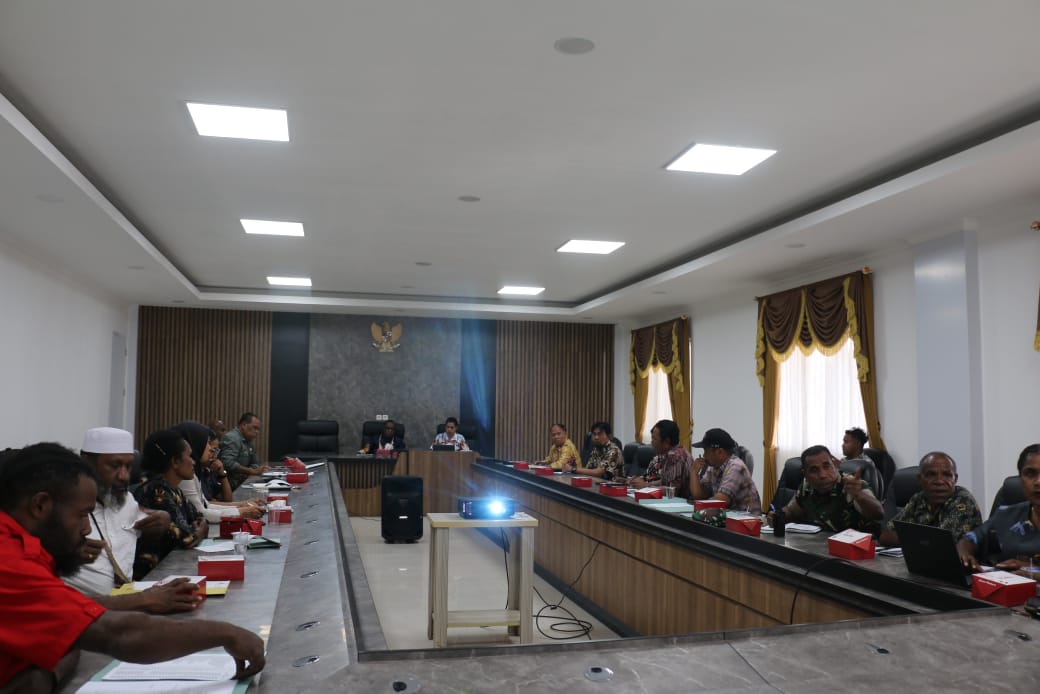 Wamena – Perwira Seksi Teritorial (Pasiter) Kodim 1702/Jayawijaya Kapten Inf Yubelius Simbiak hadiri rapat gerakan pangan murah Kabupaten Jayawijaya bersama jajaran forum koordinasi pimpinan daerah Kabupaten Jayawijaya, bertempat di Kantor Bupati Jayawijaya, Jln. Yos Sudarso, Distrik Wamena, Kab. Jayawijaya, Prov. Papua Pegunungan, Kamis (29/08/2024).