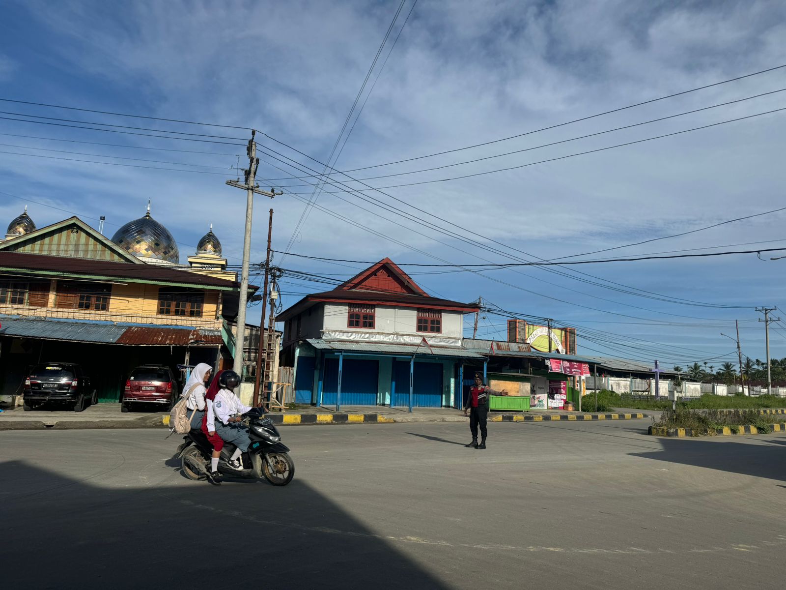 Giat rutin pagi hari, Tim PRC sat Samapta Polres Sarmi membantu Sat Lantas Mengatur arus Lalulintas