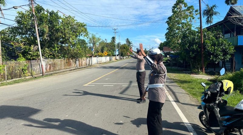 Giat Sat Lantas Polres Sarmi rutin Strong Point setiap pagi