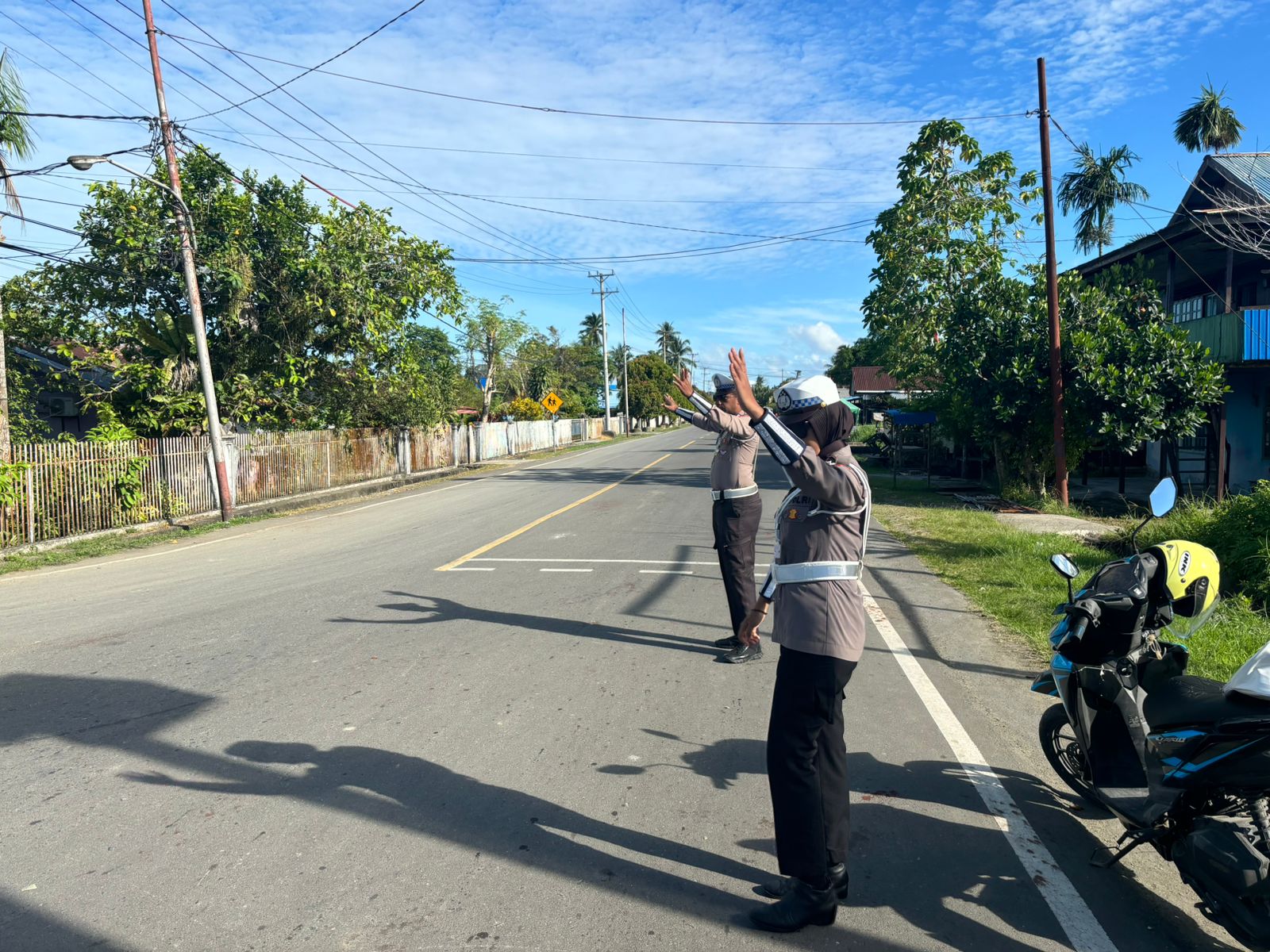 Giat Sat Lantas Polres Sarmi rutin Strong Point setiap pagi