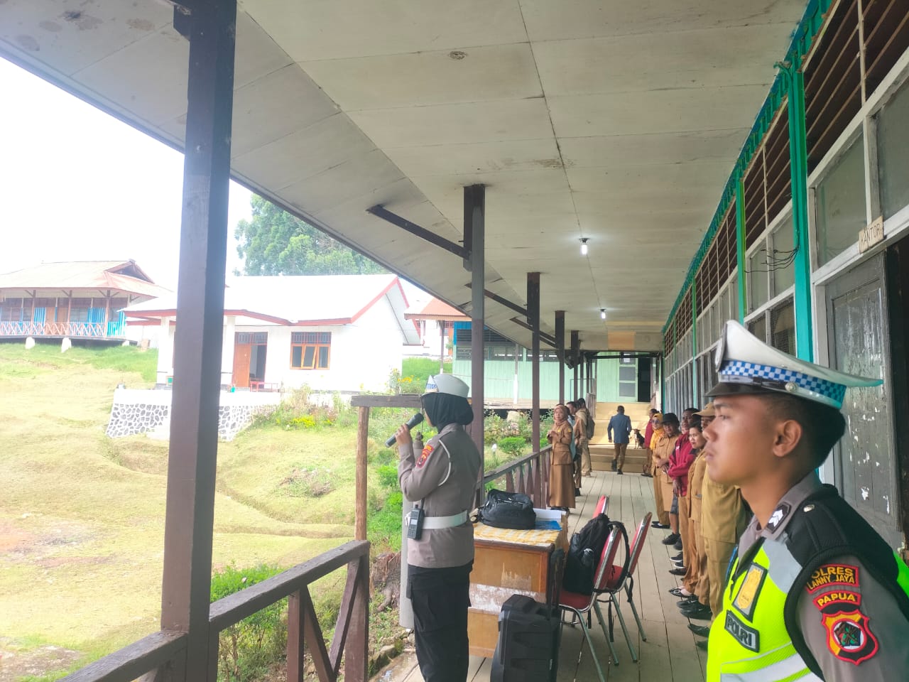 Kegiatan Police Go To Scholl dipimpin langsung Kasat Lantas Polres Lanny Jaya Iptu Tutik Yulianti bersama empat (4) personil Satuan Lalu Lintas.