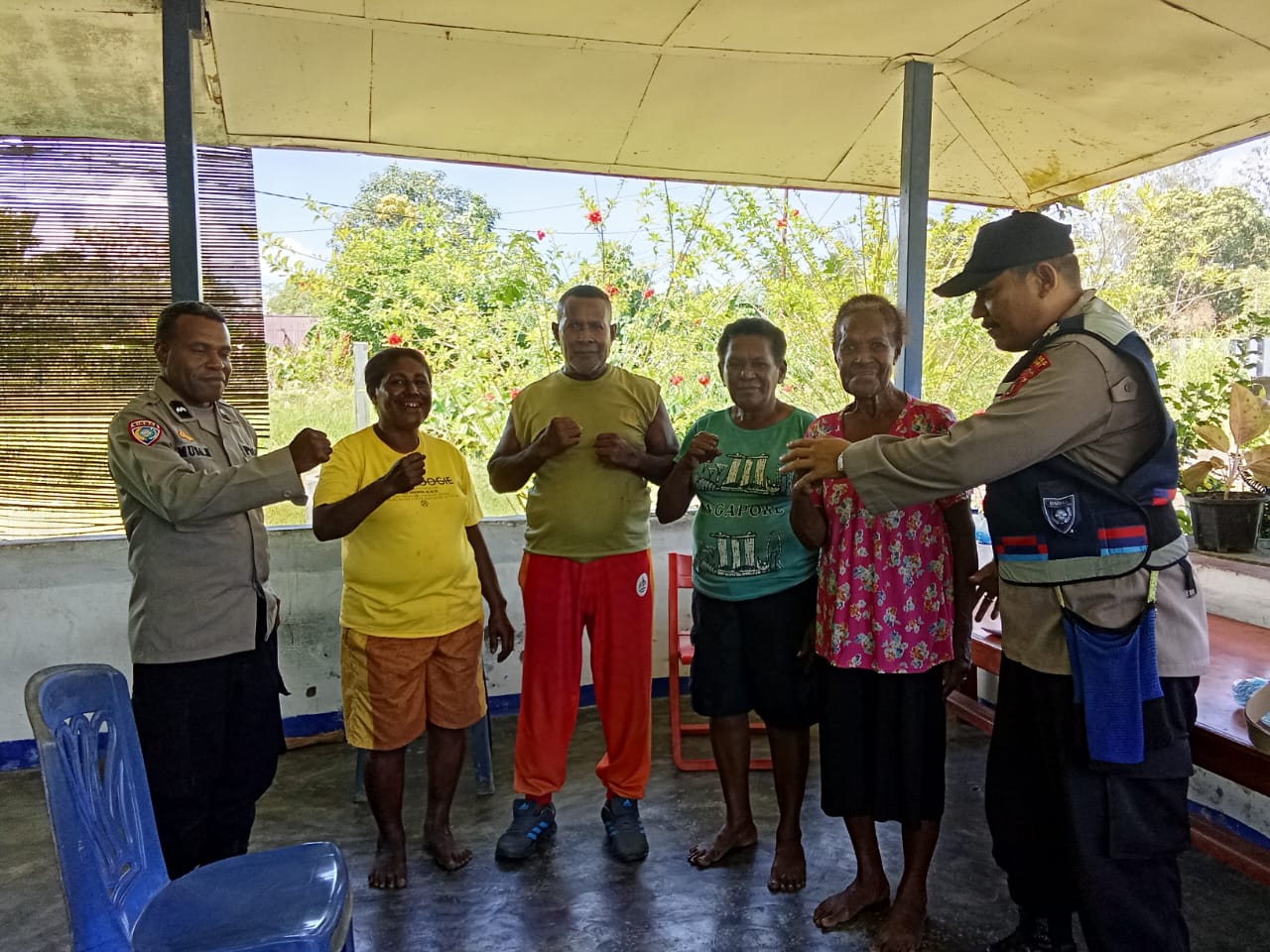 Guna menjalin silaturahmi kepada warga masyarakat, Sat Binmas Polres Sarmi mengunjungi Ondoafi Kampung Tafarewar