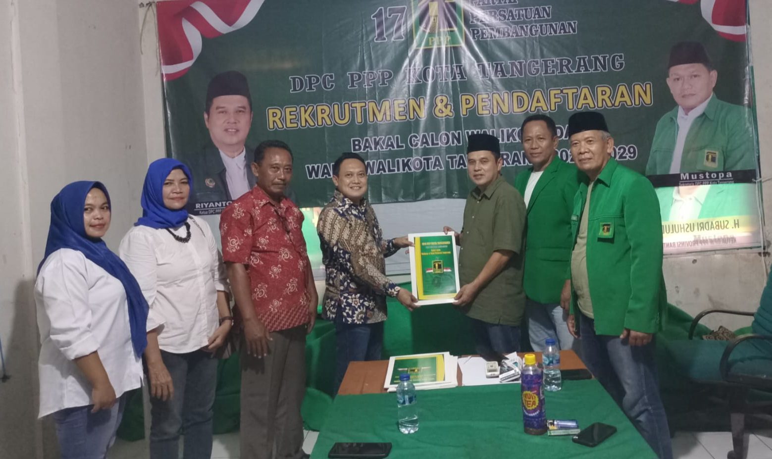 TANGERANG //wartaindonesiaterkini.com-DPC PPP Kota Tangerang, menerima langsung pendaftaran bakal calon Walikota Tangerang, Helmy Halim di kantor PPP Kota Tangerang kawasan ruko benteng betawi Taman Royal Tangerang, Selasa ( 21/5/2024).