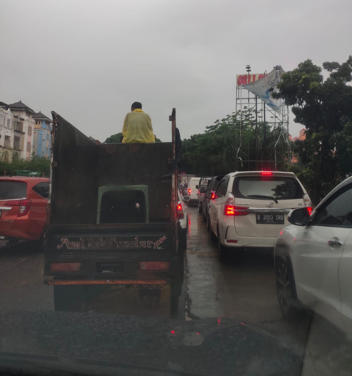 “Iya bang hujan deras semalaman yang tak kunjung berhenti mengakibatkan banjir dimana- mana dan macet ” Ucap Yogi kepada awak Media.
