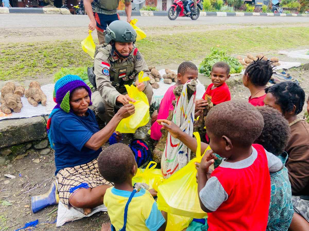 Dalam kegiatan ini, Sat Brimob Polda Sulawesi Tengah yang tergabung di Satgas Tindak ODC 2024 berbagi rezeki berupa makanan kepada masyarakat di Distrik Oksibil.
