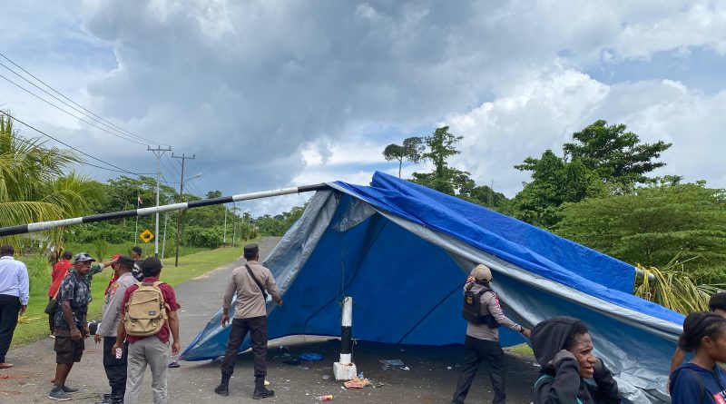 Sarmi – Bertempat di Jalan kota baru Petam menuju kantor Bupati, Kabag Ops Polres Sarmi Pimpin langsung Upaya Negosiasi dan Himbuan kepada Sekelompok Masyarakat yang melakukan Pemalangan Jalan. Rabu (19/06).