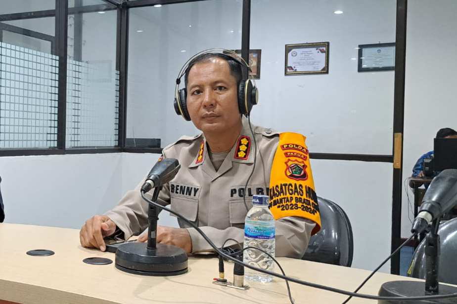 Papua, Wartaindonesiaterkini – Kepala Bidang Humas Polda Papua Kombes Pol. Ignatius Benny Ady Prabowo, S.H., S.I.K., M.Kom., menjadi narasumber dalam dialog interaktif dengan tema “Netralitas Polri Dalam Mengawal Pentahapan Pemilu 2024” yang dilaksanakan di Stasiun LPP RRI Jayapura, Kamis (22/02/2024).