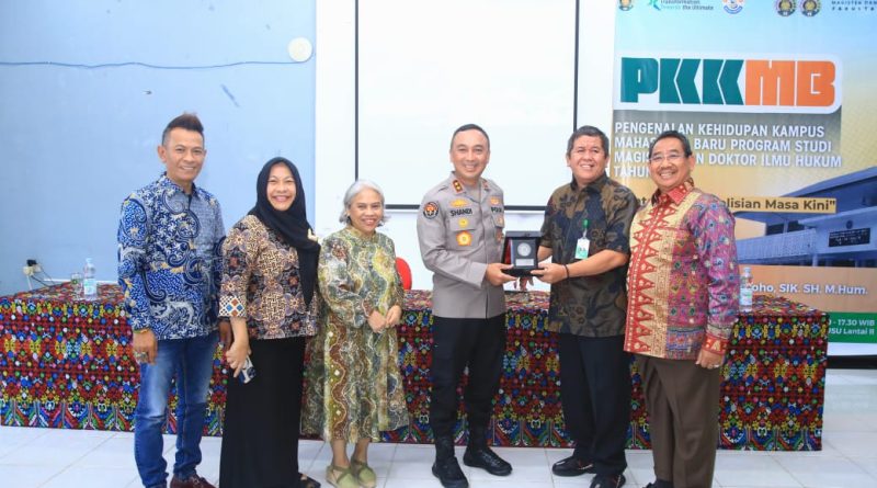 Medan|wartaindonesiaterkini.com– Kepala Divisi Hubungan Masyarakat(Kadivhumas) Polri, Irjen Pol Sandi Nugroho, memotivasi mahasiswa Universitas Sumatera Utara (USU) agar senantiasa memiliki semangat belajar. Pesan tersebut disampaikan saat menghadiri acara Pengenalan Kehidupan Kampus Mahasiswa Baru (PKKMB) di Fakultas Hukum USU, Jumat (22/8/2025).