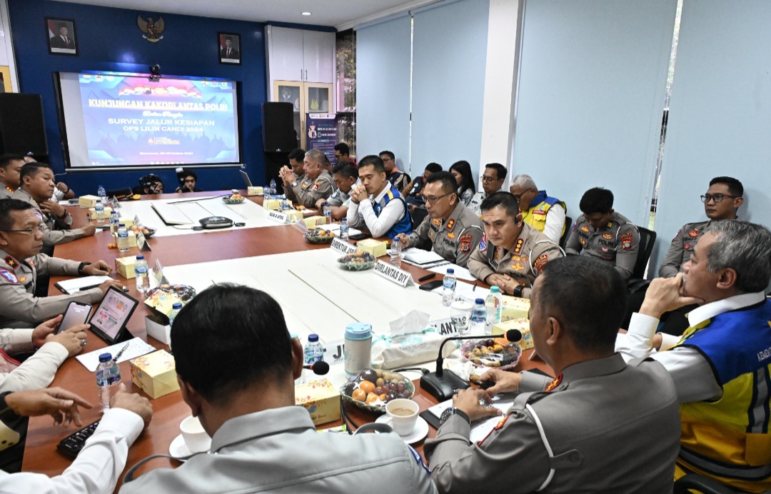 Polda Jateng -Kota Semarang|wartaindonesiaterkini.com — Kakorlantas Polri, Irjen Pol. Dr. Drs. Aan Suhanan, M.Si, bersama rombongan, melaksanakan survey kesiapan jalur tol, jalur Pantura, serta pelabuhan di wilayah Jawa Tengah. Pada Kamis (28/11/2024), Bertempat di Kantor PT. Jasa Marga Semarang–Batang (JSB), Kalikangkung, di laksanakan arahan hasil kegiatan Survey Jalan Tol dan Pelabuhan di Wilayah Hukum Polda Jateng, kegiatan ini merupakan bagian dari persiapan Operasi Natal dan Tahun Baru (Nataru) 2024/2025.