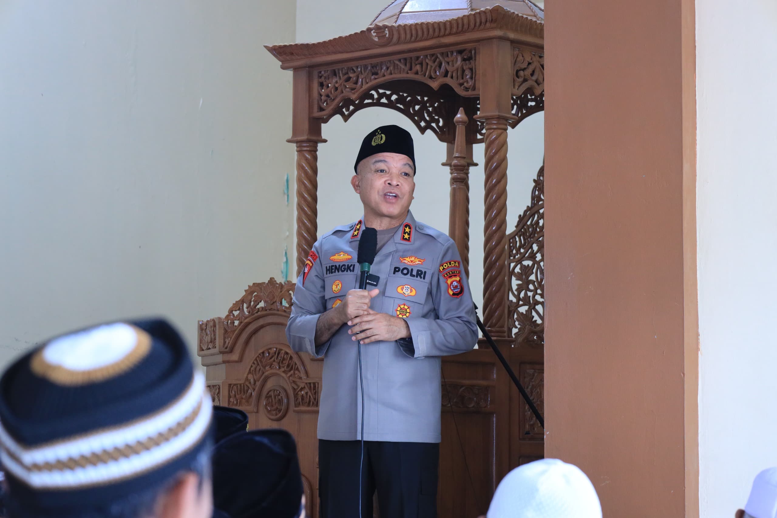 Dalam kesempatan tersebut, Kapolda Banten menyampaikan pentingnya peran aktif seluruh elemen masyarakat dalam menjaga keamanan dan ketertiban lingkungan. Menurutnya, situasi kamtibmas yang aman dan kondusif tidak dapat terwujud tanpa dukungan serta kepedulian bersama. “Saya mengajak seluruh jamaah dan masyarakat untuk bersama-sama menjaga situasi kamtibmas agar tetap aman dan kondusif. Keamanan bukan hanya tugas Polri, tetapi menjadi tanggung jawab kita bersama. Apabila masyarakat melihat atau mengetahui adanya kejadian maupun permasalahan yang berpotensi mengganggu kamtibmas, jangan ragu untuk segera melaporkannya kepada pihak kepolisian,” ujar Kapolda Banten Irjen Pol Hengki.