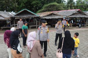 Selanjutnya, Kapolda Banten juga menyempatkan diri menyapa masyarakat dan wisatawan di kawasan Anyer, sekaligus memberikan imbauan secara humanis agar senantiasa menjaga ketertiban, keselamatan, serta mematuhi arahan petugas demi kenyamanan bersama.
