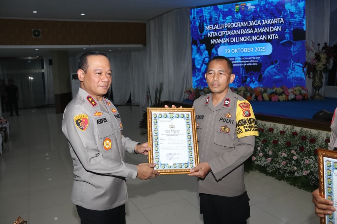 Jakarta|wartaindonesiaterkini.com — Dalam kegiatan Arahan Kapolda Metro Jaya kepada Bhabinkamtibmas Jajaran Polda Metro Jaya yang digelar di Balai Pertemuan Polda Metro Jaya pada Rabu (29/10/2025), Aiptu Erwanto, Bhabinkamtibmas Kelurahan Poris Gaga, Polsek Batuceper, Polres Metro Tangerang Kota, menerima penghargaan sebagai Bhabinkamtibmas Teladan dari Kapolda Metro Jaya Irjen Pol Asep Edi Suheri, S.I.K., M.Si.