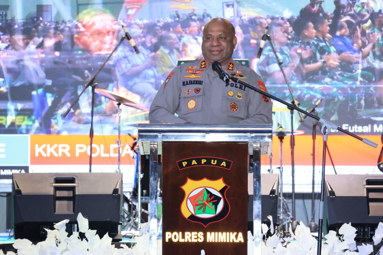 Papua – Kepala Kepolisian Daerah Papua, Irjen Pol. Mathius D. Fakhiri, S.I.K menghadiri kegiatan Kebaktian Kebangunan Rohani (KKR) dalam rangka Pilkada Damai di Tanah Papua 2024 dengan tema Bangkit dan Bermazmur Bagi Kristus Menuju Pilkada Damai di Tanah Papua.