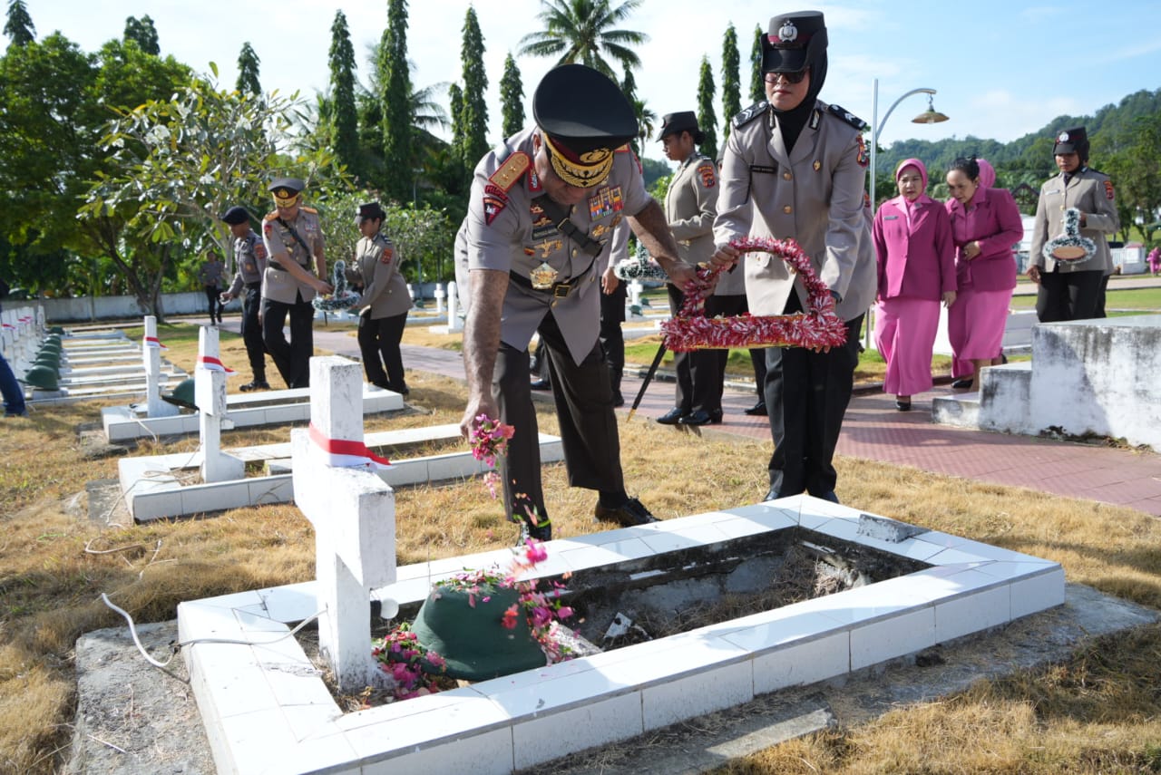Irjen Pol. Mathius D. Fakhiri, S.I.K, pada kesempatannya, menyampaikan pentingnya mengenang dan menghormati para pahlawan yang telah berkorban demi negara. Beliau juga mengingatkan kepada seluruh anggota Polri untuk terus menjunjung tinggi nilai-nilai perjuangan dan mengimplementasikannya dalam tugas sehari-hari.