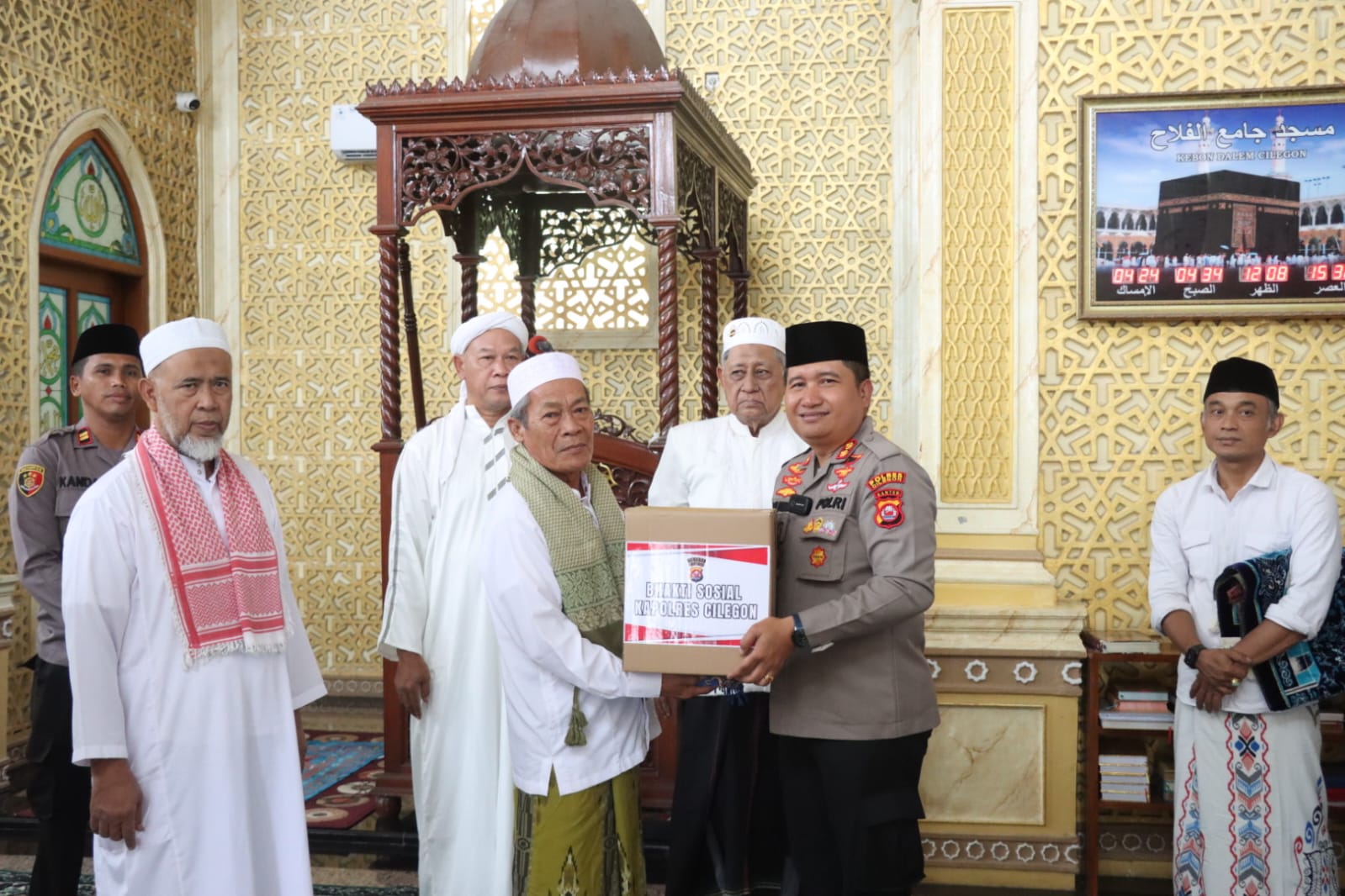 Kegiatan Jum’at Keliling kemudian dilanjutkan dengan pemberian bantuan sosial oleh Kapolres Cilegon kepada pengurus Masjid Al-Falah, sebagai wujud kepedulian Polri terhadap masyarakat. Acara diakhiri dengan doa dan foto bersama, berlangsung dalam suasana penuh keakraban dan kebersamaan.