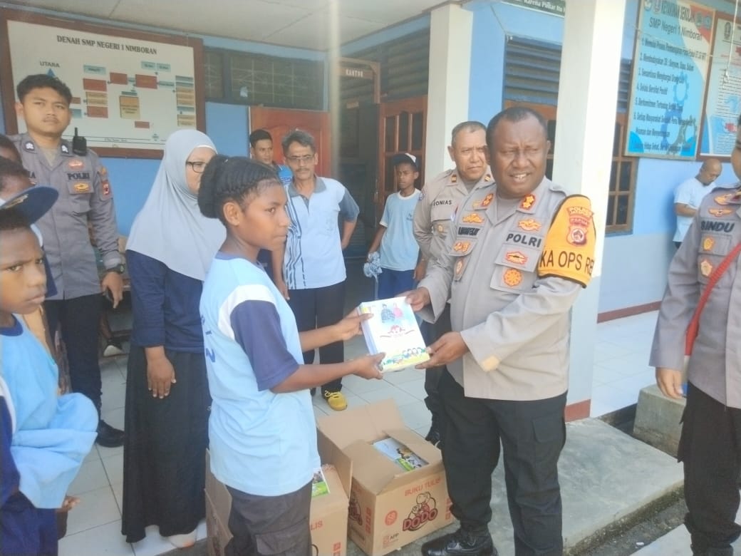 Dalam sambutannya, Kapolres Jayapura mengatakan Polres Jayapura mendatangi SMP Negeri 1 Nimboran dengan maksud untuk memberikan bantuan berupa buku tulis yang diperintahkan langsung oleh Kapolda Papua.