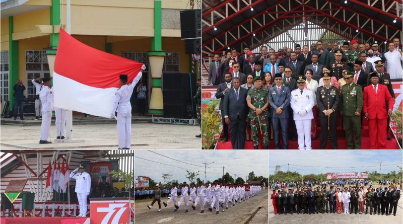 Kapolres Mappi Hadiri Upacara Pengibaran Bendera Merah Putih Memperingati HUT RI Ke-77 Di Kabupaten Mappi
