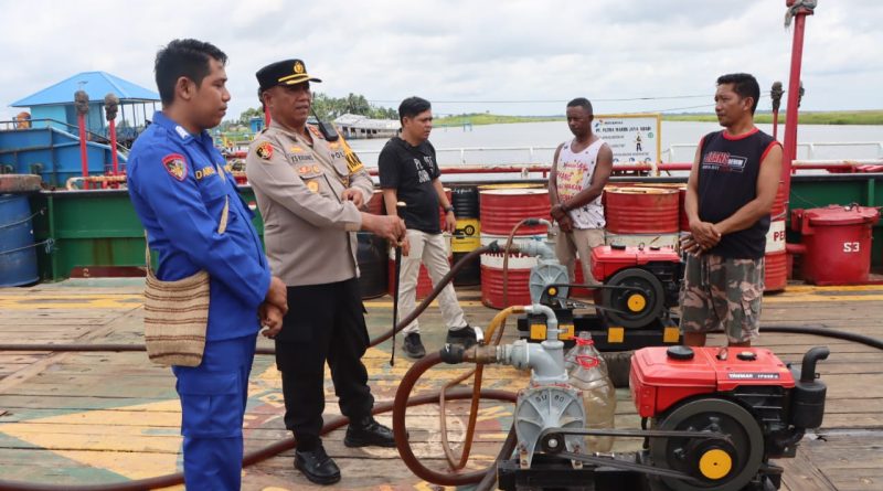 Mappi – Bertempat di Pelabuhan Misi dan APMS Kilo 07, Kapolres Mappi AKBP Yustinus S. Kadang, S.Sos., M.Si melakukan pengawasan langsung pembongkaran dan pendistribusian BBM (Bahan Bakar Minyak) jenis pertalite dan minyak tanah, Senin. (05/02).