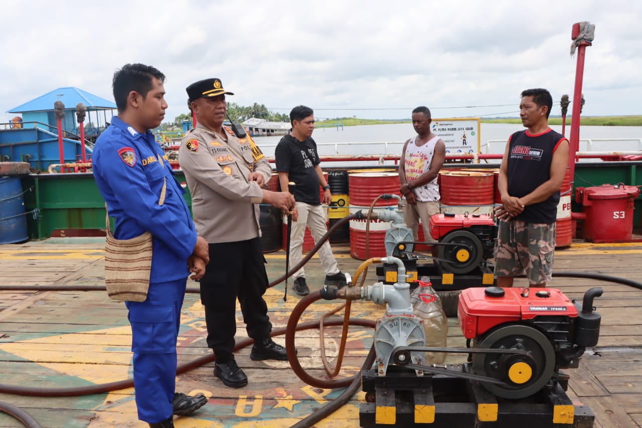Kapolres Mappi bersama beberapa personil Polres Mappi melakukan pemeriksaan langsung pembongkaran di atas kapal SPOB Indi Mutiara Papua yang melakukan pembongkaran pertalite ke tangki mobil milik APMS kilo 07. yang di lanjutkan dengan pemeriksaan gudang penyimpanan BBM di APMS Kilo 07 serta pendistribusian kepada masyarakat.