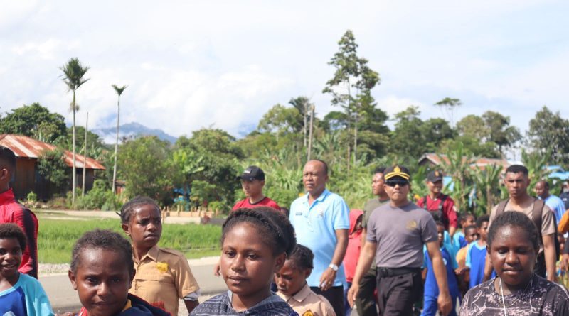 Mamberamo Tengah – Kapolres Mamberamo Tengah Kompol Rahman,S.Sos,.M.Si,. bersama PJU serta anggota Polres Mamberamo Tengah hadir dan Memeriahkan Hari Kesehatan Nasional (HKN) ke-59 dengan menggelar Jalan Santai di Kota Kobakma. Kegiatan ini menciptakan momen kebersamaan yang penuh semangat. Kobakma ,Jumat (24/11/2023).