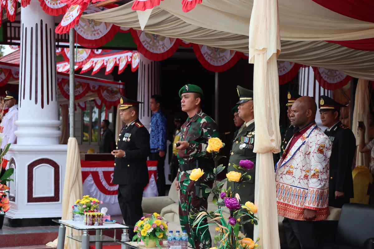Upacara tersebut diikuti oleh peserta dari berbagai unsur, termasuk TNI, Polri, dan ASN Pegunungan Bintang. Dalam suasana khidmat, petugas penurunan bendera berhasil menurunkan duplikat bendera pusaka Sang Merah Putih dengan sempurna, diiringi lagu kebangsaan Indonesia Raya. Setelah bendera diturunkan, bendera diserahkan kembali kepada Inspektur Upacara, Wakil Bupati Pegunungan Bintang, Kris Bakweng Urobmabin, S.T.