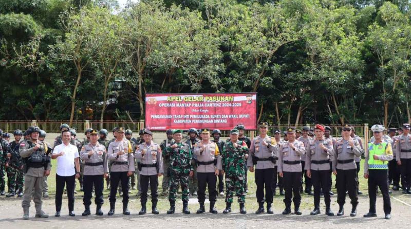 Papua – Dalam rangka pengamanan Pemilukada Serentak Bupati dan Wakil Bupati. Kegiatan ini dilaksanakan di Lapangan Apel Polres Pegunungan Bintang pada hari Senin, 2 September 2024, pukul 09.00 WIT. Apel ini juga dihadiri oleh sejumlah pejabat penting seperti Kasat Narkoba IPTU Irmu Jaya, S.H., M.H yang bertindak sebagai Komandan Apel, Kabag Ops AKP Matheus Tanggua Ate, S.H, Kabag Ren AKP Haryanto, S.Sos, Pabung 1715 Yahukimo Kapten Inf Supriyadi, serta perwakilan dari TNI/Polri dan instansi terkait lainnya. Senin, (02/09/2024).