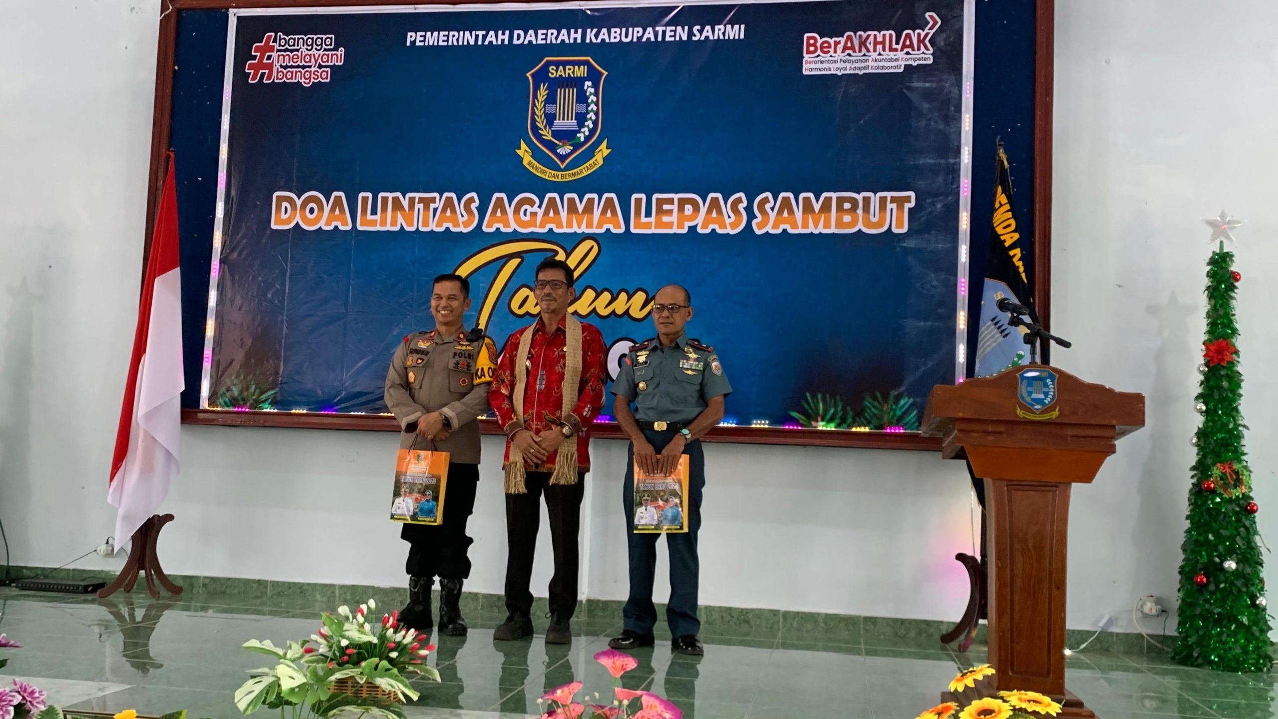 Sarmi – Kapolres Sarmi Kompol Suparmin, S.IP.,MH, menghadiri acara doa lintas agama peringatan lepas sambut tahun 2024 – 2025 yang diselenggarakan oleh Pemerintah Daerah Kabupaten Sarmi, di Aula Setda Kabupaten Sarmi, Kamis (16/1/2025).