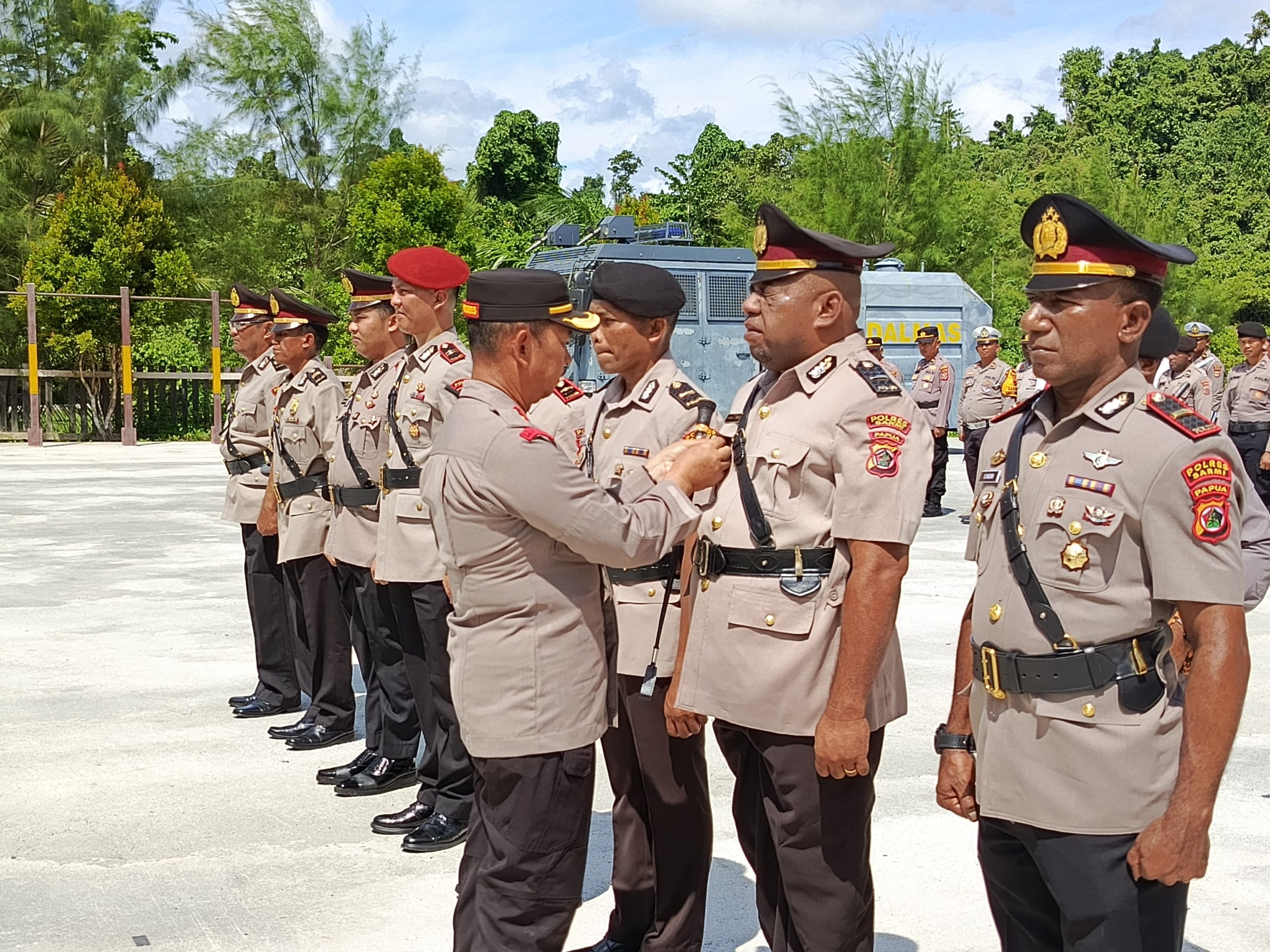 Kapolres Sarmi memimpin upacara Sertijab Kabag Ren, Kasat Reskrim, Kasat Samapta dan Kapolsek Tor Atas Polres Sarmi. Polda Papua
